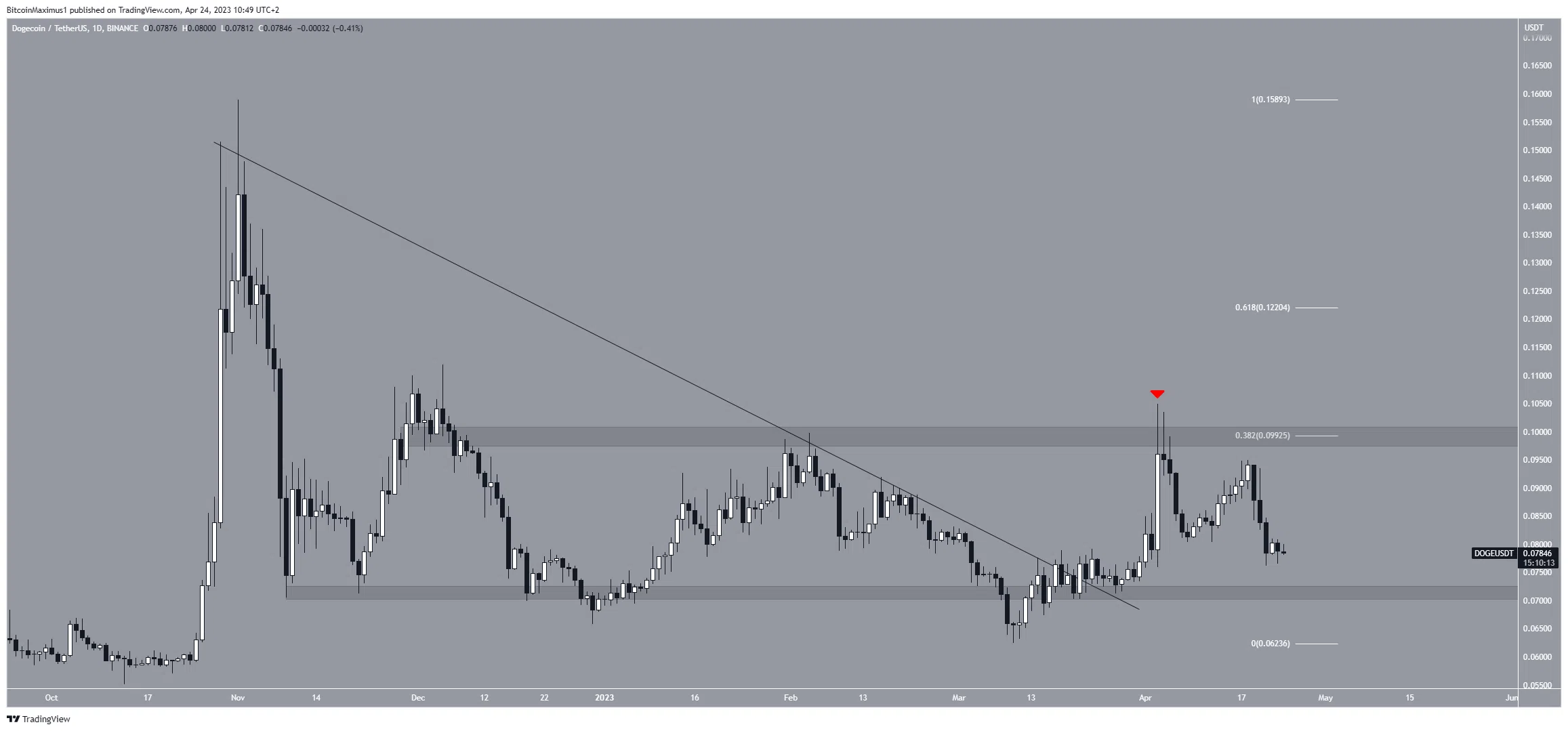A Dogecoin (DOGE) quase atingiu sua região de preços mínimos após uma rejeição na região mais alta em 3 de abril.