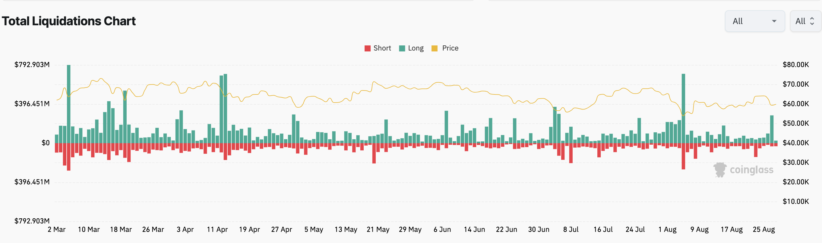 A Dogecoin representou cerca de 1% do total das liquidações, somando US$ 3,08 milhões, com posições longas sendo as mais afetadas.