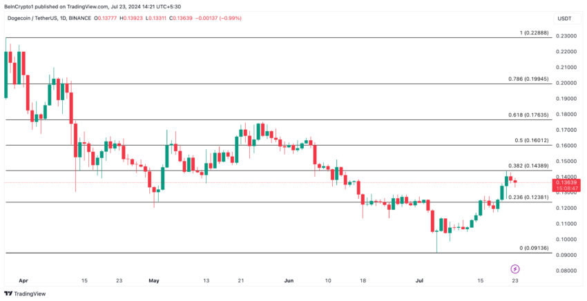 No entanto, se a cruz da morte acabar sendo um sinal falso, e a tendência de alta em relação a DOGE persistir, seu preço pode subir para US$ 0,14.