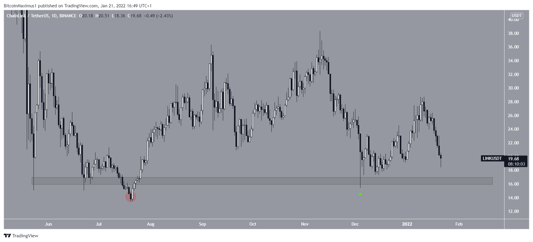 Com exceção de um desvio em 10 de julho (círculo vermelho), a LINK está acima da área horizontal de US$ 16,50 desde maio. Mais recentemente, a área foi o catalisador para um salto significativo em 4 de dezembro (ícone verde), que levou a um topo de US$ 28,71 alcançado no dia 11 de janeiro.