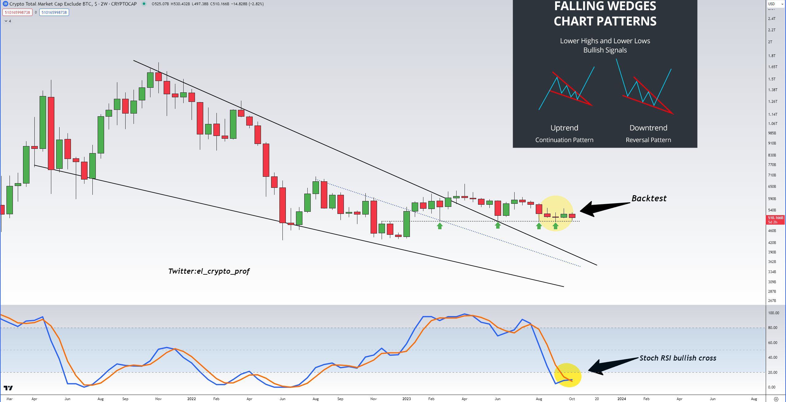 O analista “Moustache” observou um rompimento de uma queda de dois anos e meio para o valor total do mercado, excluindo o Bitcoin.