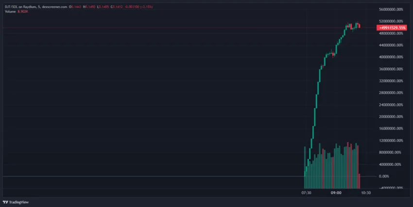 SponsoredEssa notícia teve um impacto significativo nas memecooins relacionadas ao ex-presidente, com a recém-cunhada TrumpCoin (DJT) disparando quase 50.000.000% em menos de três horas, elevando sua capitalização de mercado para US$ 143,1 milhões. Da mesma forma, outra moeda meme, a Satoshi Trump (MBGA), registrou um aumento dramático de mais de 7.900%, atingindo uma capitalização de mercado de US$ 2,8 milhões.