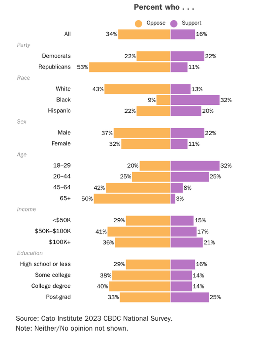 Ambos se opõem a uma CBDC que eles temem que corroa as liberdades civis. Trump, por outro lado, disse que não quer que nenhuma moeda digital ameace o domínio do dólar americano.