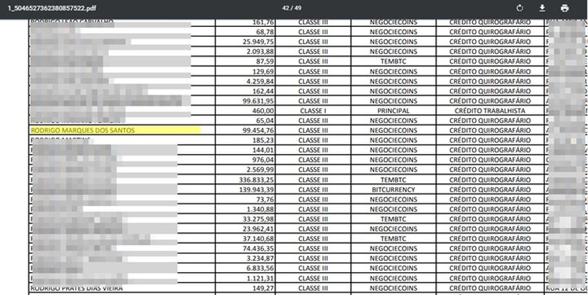 Por outro lado, quem não está na lista é o apresentador Ratinho. O famoso apoiava os negócios do Bitcoin Banco, mas parece que Carlos Massa não está entre os credores do grupo.