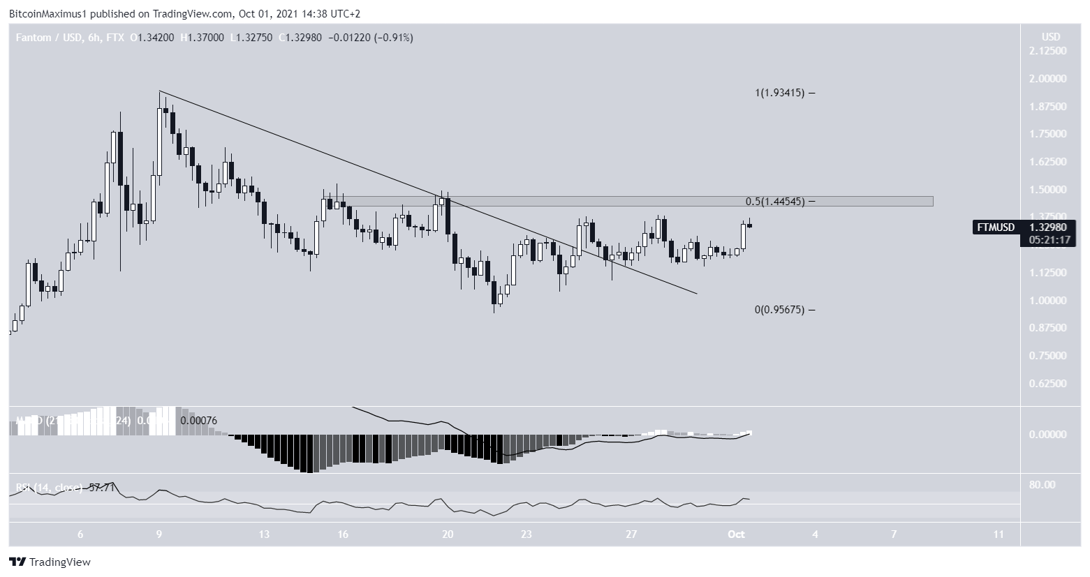 Semelhante ao FTM, o AXS seguia uma linha de tendência de baixa desde que atingiu o preço recorde de US$ 94,67 no dia 4 de setembro. A queda levou a uma mínima de US$ 48,10 no dia 21 de setembro.