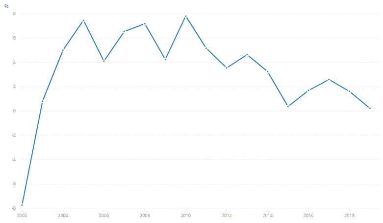 Como resultado, o Uruguai desfruta de uma grande atividade econômica, tanto de negócios domésticos quanto internacionais. Desde 2002, o país conseguiu manter um crescimento positivo do PIB e manter a inflação dentro da meta do banco central.