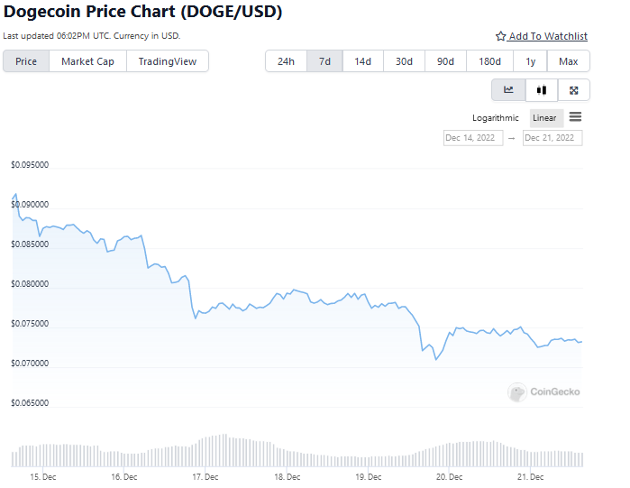 No fechamento da matéria, a DOGE era negociada a US$ 0,073, com queda de 1,3% no dia e uma desvalorização de quase 20% na semana, segundo o CoinGecko.