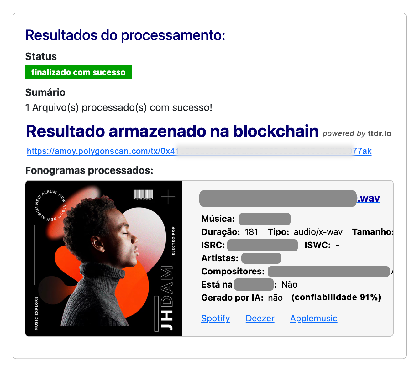 SponsoredO funcionamento está apoiado em um protocolo que registra cada etapa de criação, compressão e execução das músicas. Segundo a empresa, o objetivo é oferecer rastreabilidade e auditoria em todas as fases da cadeia fonográfica.