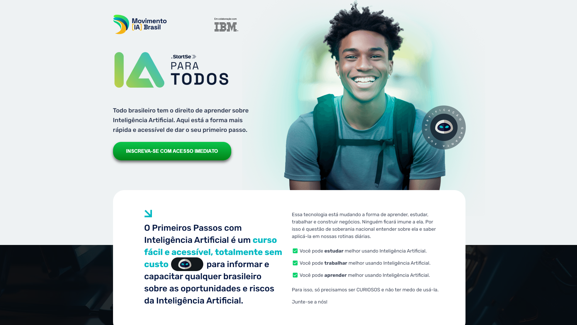A inscrição pode ser feita através do site lp.startse.com/ia-para-todos.