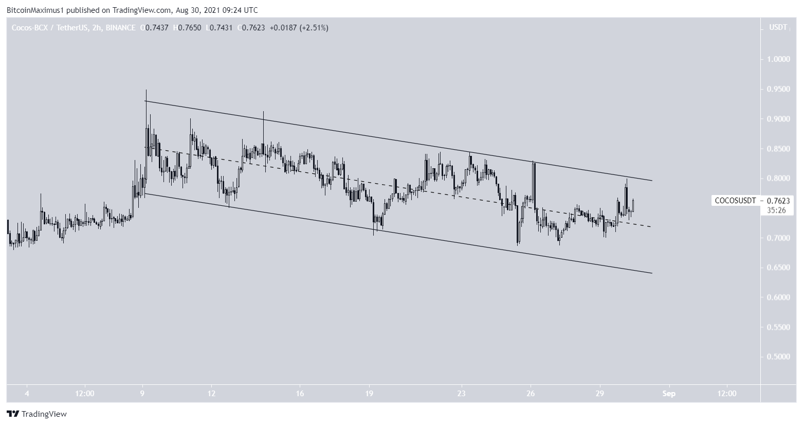 O gráfico de duas horas mostra que o COCOS está sendo negociado dentro de um canal paralelo de baixa. Essas estruturas geralmente contêm movimentos corretivos. Portanto, um eventual rompimento seria mais provável.