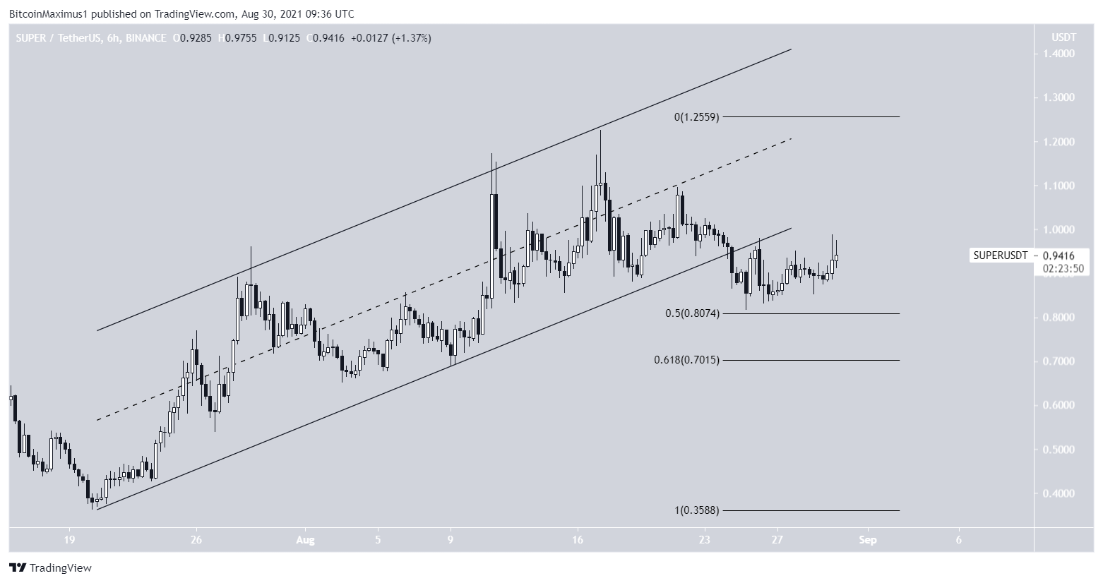 A SUPER está em alta desde que rompeu uma linha de tendência de baixa em 21 de julho. Até agora, ele conseguiu atingir uma alta de US$ 1,225, no dia 17 de agosto.