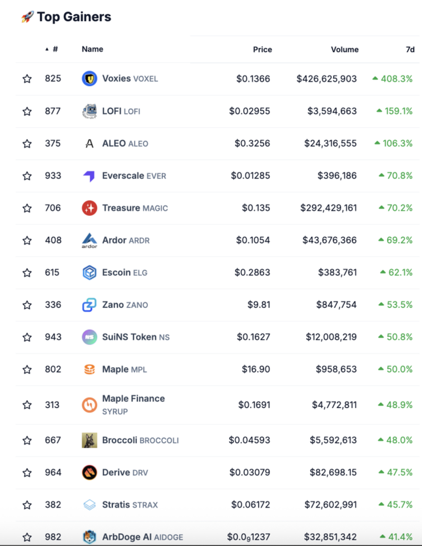 Mesmo assim, a Voxies (VOXEL) é a maior vencedora no mercado de criptomoedas esta semana, com o maior ganho de preço nos últimos sete dias.