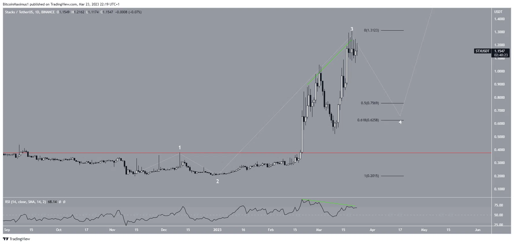 A Stacks aumentou significativamente desde o início do ano. Atingiu uma nova alta anual de US$ 1,31 em 20 de março.