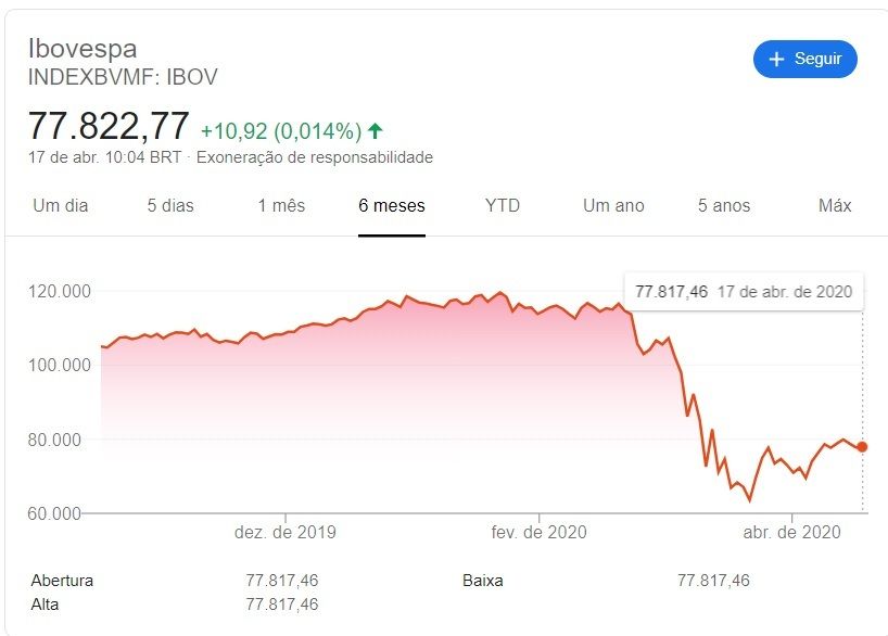 No dia 23 de março, chegou ao nível de 63.600 pontos – aproximadamente a metade do número anterior – e opera em março na casa dos 77.000 pontos.