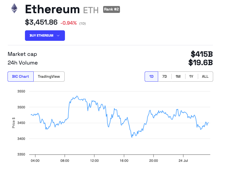Por outro lado, o preço do Ethereum apresentou pouca flutuação. Em suma, ele estava sendo negociado a US$ 3.451, uma ligeira queda de cerca de 1% em relação ao dia anterior. Apesar dos desenvolvimentos significativos nas ofertas de ETF, o preço de mercado desse importante ativo digital permaneceu relativamente inalterado.