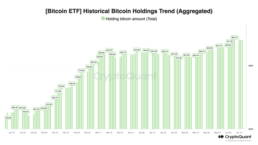 Este movimento reflete o que aconteceu no início de 2024, com a aprovação de ETFs de Bitcoin à vista. Esses produtos agora detêm mais de 882.000 BTC, no valor de mais de US$ 59 bilhões.