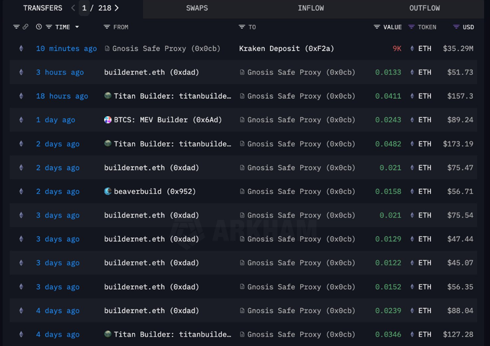 O endereço está supostamente ligado a construtores de blocos de alta frequência Beaver Builder e Titan Builder. Segundo o analista, ainda possui mais de 18 mil ETH, valendo mais de US$ 70 milhões, com a maioria ainda em staking.