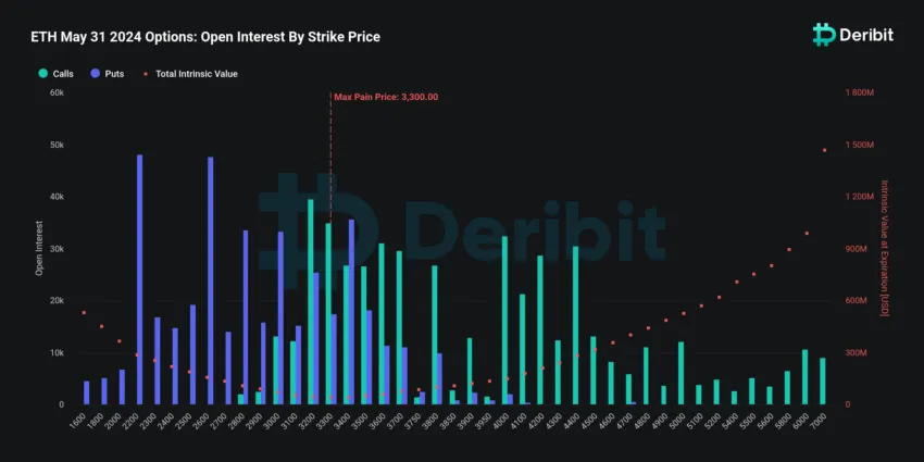 Além das opções de Bitcoin, 2.750.922 contratos de opções de Ethereum estão programados para expirar hoje. Essas opções têm um valor nocional de US$ 3,47 bilhões, uma relação compra/venda de 0,85 e um ponto máximo de US$ 3.300.