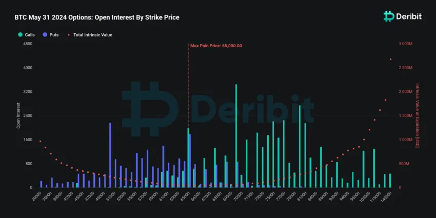 Os dados também revelam que o ponto máximo para essas opções que estão expirando é de US$ 65.000. O ponto máximo é o preço pelo qual o ativo causará o maior número de perdas financeiras aos detentores.