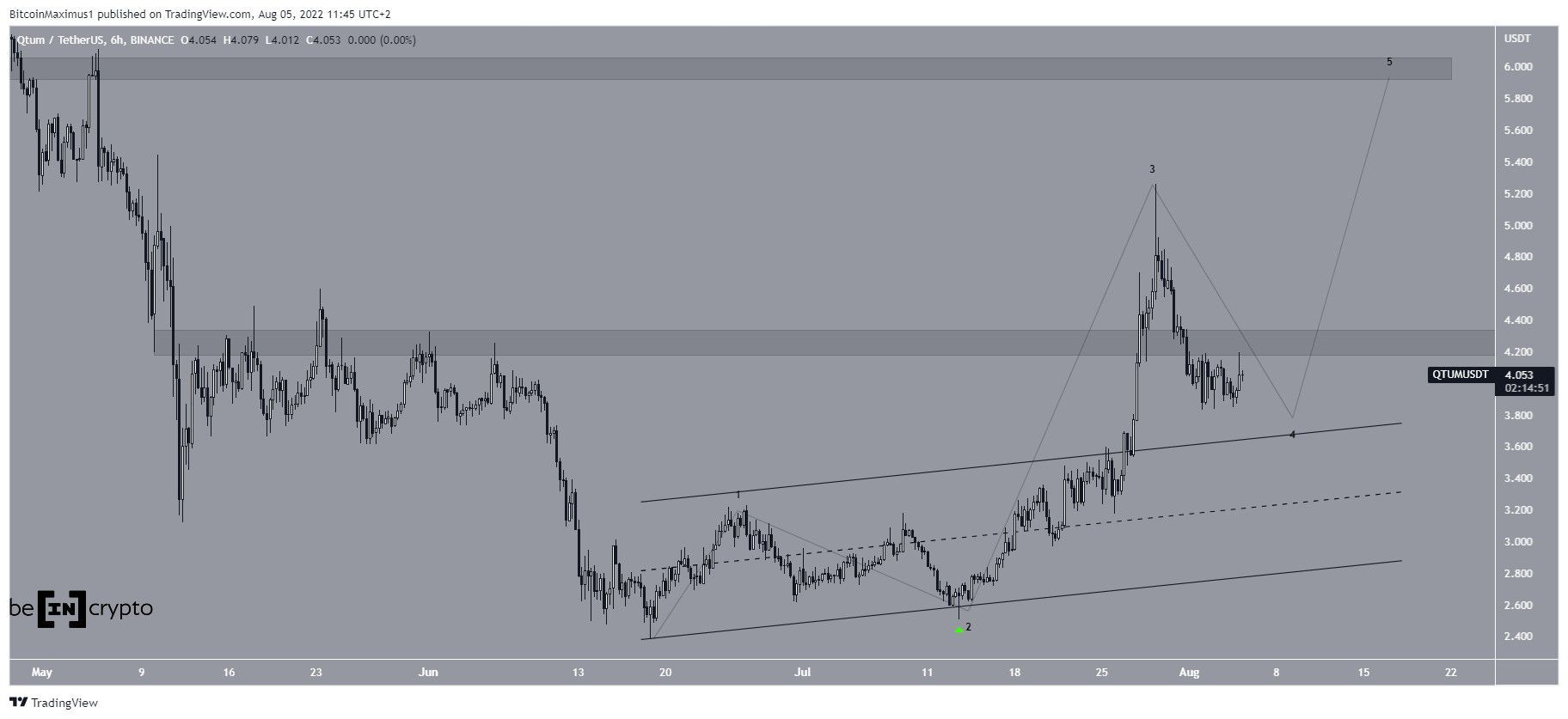 O QTUM tem subido dentro de um canal paralelo ascendente desde 18 de junho. Saltou na linha de suporte desse canal em 13 de julho e conseguiu romper em 27 de julho. Isso levou a uma alta de US$ 5,25 dois dias depois.
