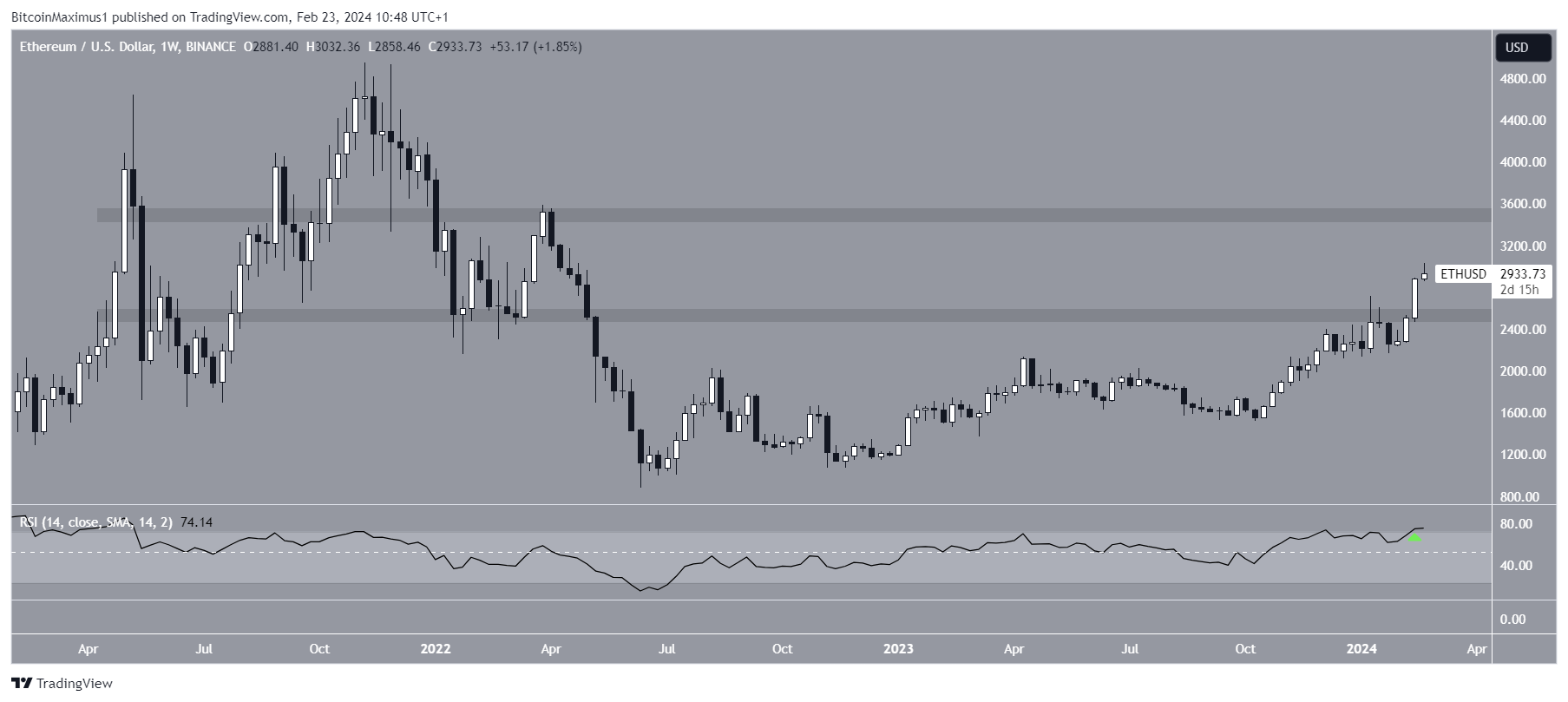 O Ethereum (ETH) registrou seu fechamento semanal mais alto desde abril de 2022 na semana passada, ultrapassando a marca de US$ 3.000 esta semana.