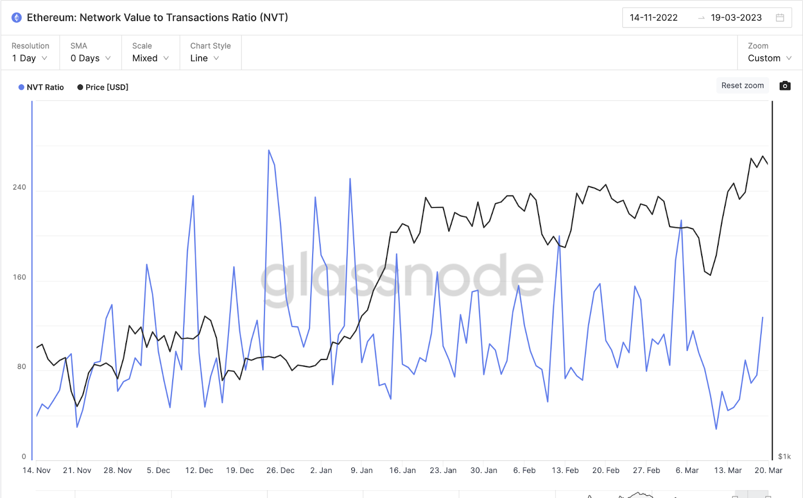 Em 19 de março, o índice NVT era de 127,27, 40% menor que os 213,75 relatados em 5 de março. O declínio no índice NVT geralmente significa que a tração da rede aumentou consideravelmente e o token está subvalorizado.