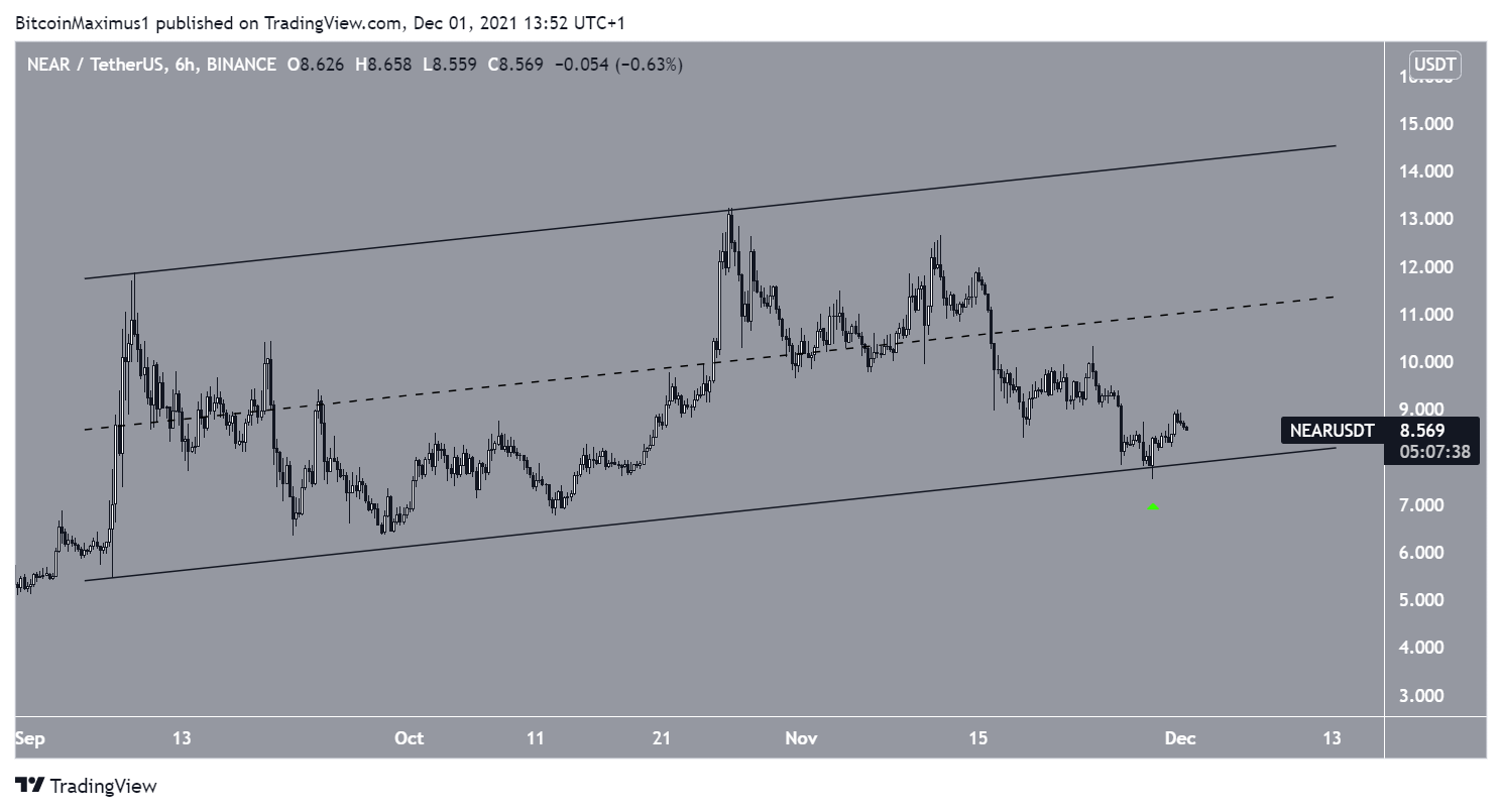 A NEAR está em queda desde 26 de outubro, quando atingiu uma alta de US$ 13,23. No último domingo (28), o token voltou a subir após atingir uma baixa de US$ 7,53. O salto (ícone verde) serviu para validar a linha de suporte de um canal paralelo de alta. Enquanto o token estiver sendo negociado acima desta linha, a estrutura de alta permanece intacta.
