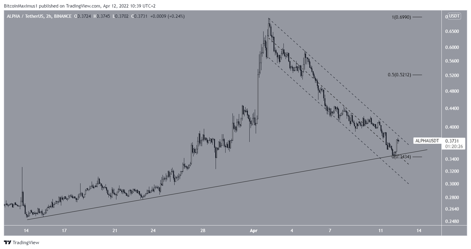 A ALPHA está caindo dentro de um canal paralelo de baixa de curto prazo desde 2 de abril. O movimento levou a uma mínima de US$ 0,34 feita nesta terça-feira (12).