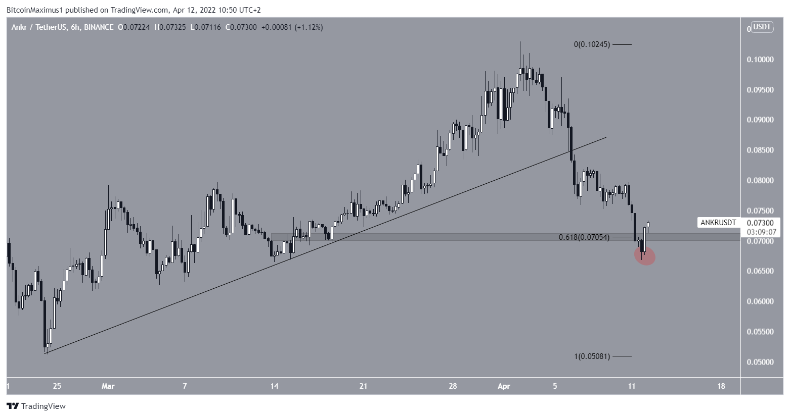 O ANKR está seguindo uma linha de tendência de alta desde 24 de fevereiro. O movimento levou a um topo de US$ 0,10 em 2 de abril. No entanto, o preço do ativo vem caindo desde então e rompeu abaixo de uma linha de tendência de alta no dia 6 de abril.