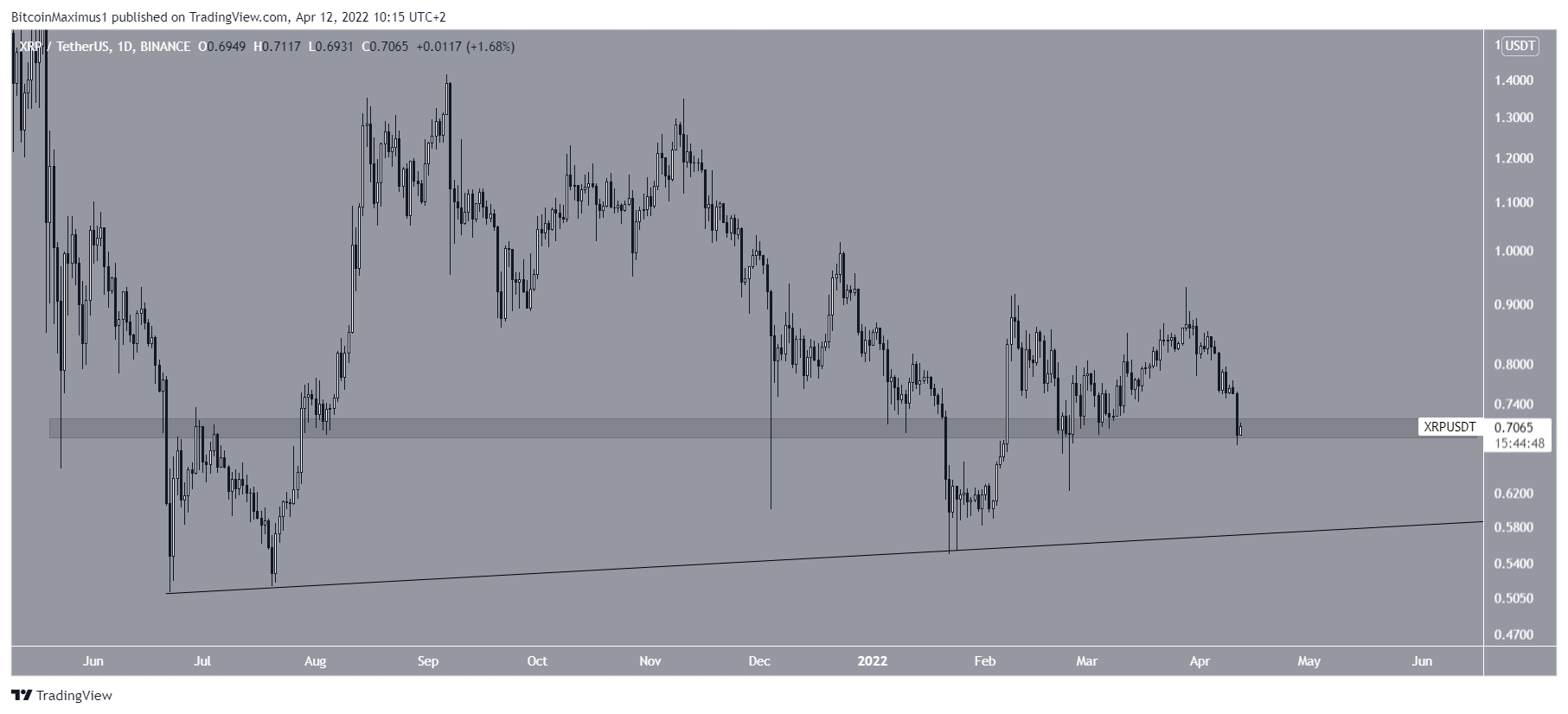 Semelhante ao BTC, o XRP está caindo desde 28 de março. O movimento até agora levou a uma mínima de US$ 0,68 nesta segunda-feira. A mínima foi feita dentro da área de suporte horizontal de US$ 0,70, onde o token está sendo negociado atualmente.