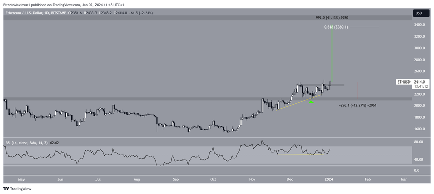 A análise técnica do período diário oferece uma perspectiva de alta sobre a tendência futura da ETH devido à ação do preço e às leituras do RSI.
