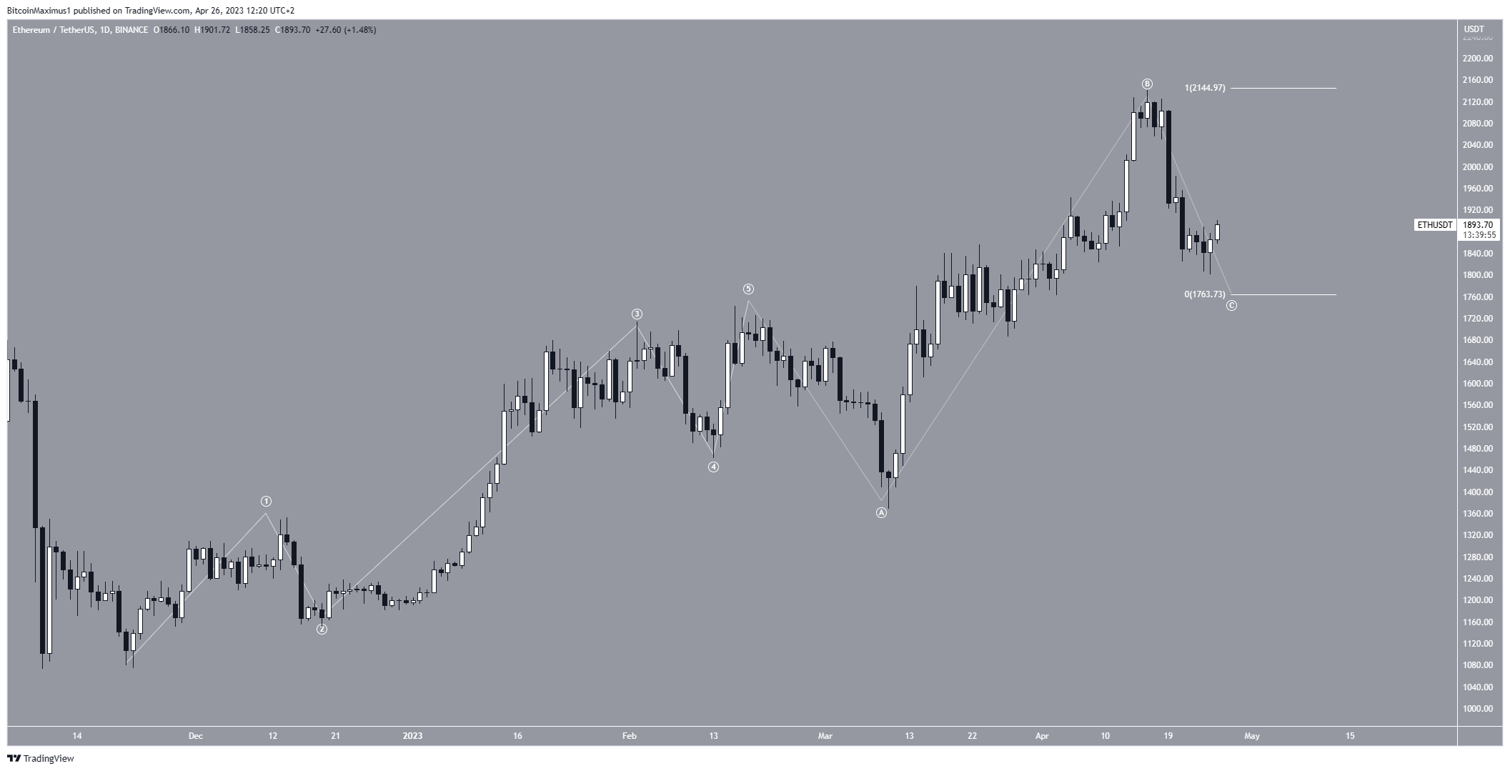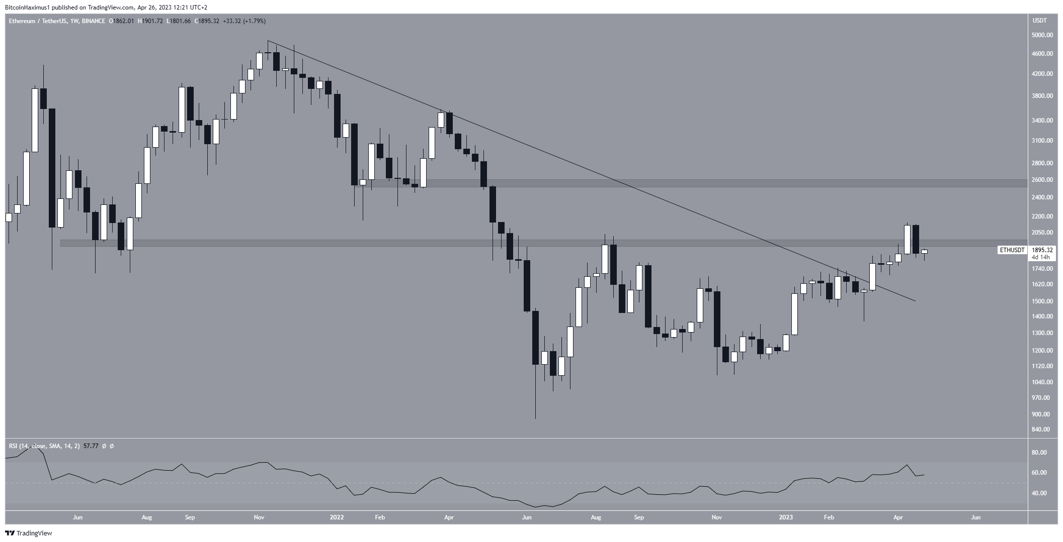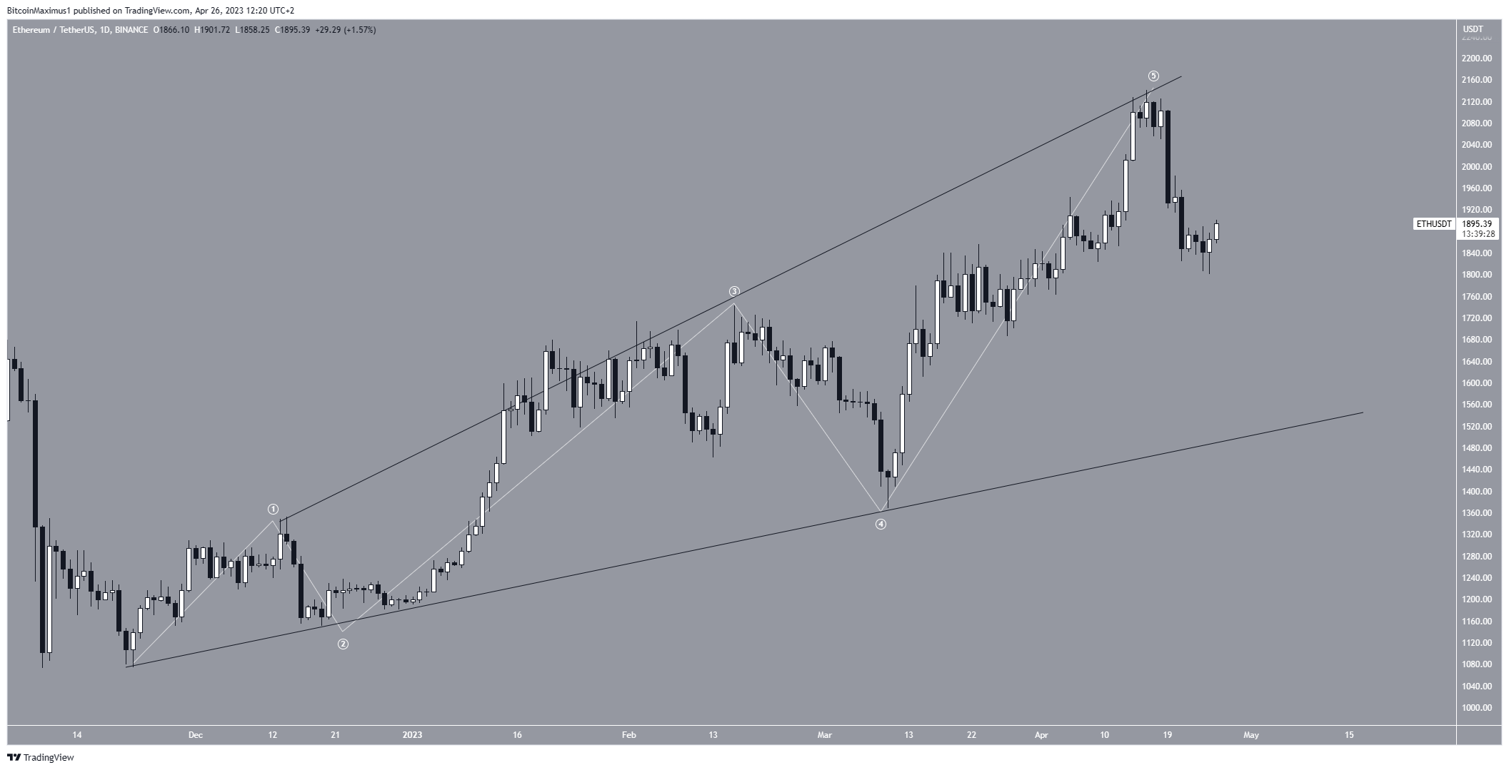 No entanto, o preço do ETH não conseguiu sustentar seu rali na semana passada. Em vez disso, diminuiu e caiu abaixo da área de suporte horizontal de US$ 1.930. Isso é considerado um sinal de baixa, pois o preço não conseguiu sustentar o rompimento que havia realizado.