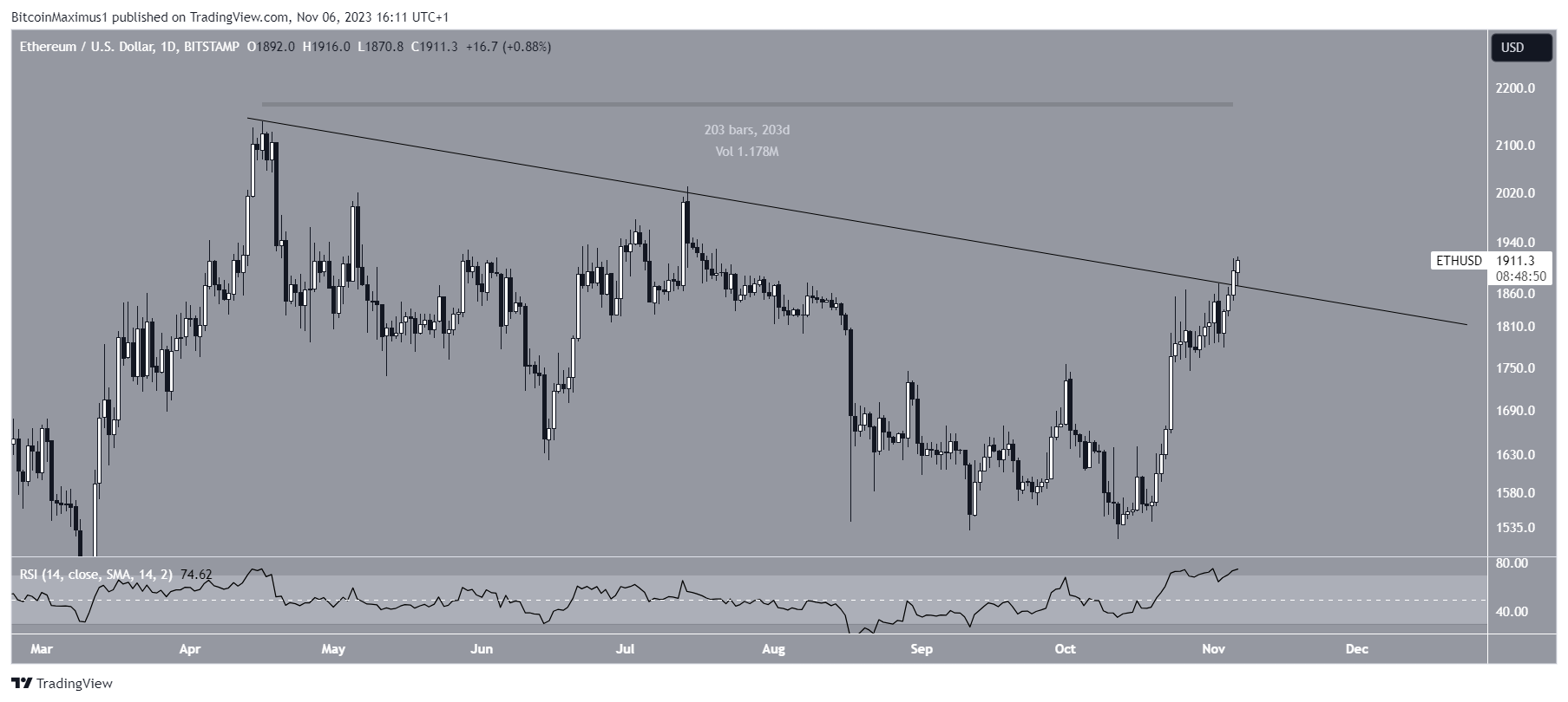 No último domingo (5), o Ethereum (ETH) rompeu uma linha de tendência de baixa que estava em vigor há 200 dias.