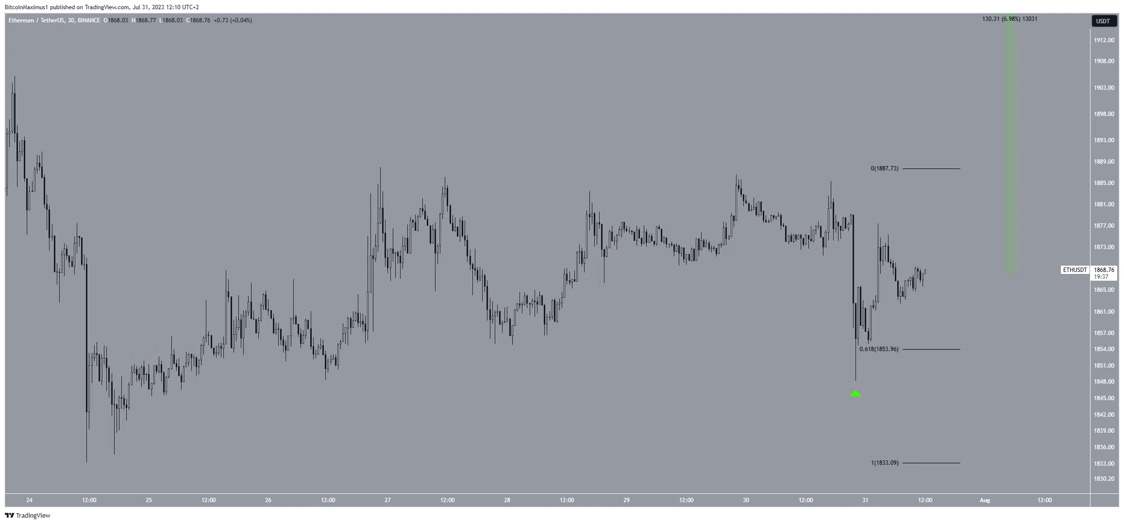 Portanto, eles se alinham com a possibilidade de que a correção já esteja completa. Nesse caso, a perspectiva futura mais provável será um aumento em direção às máximas de julho em US$ 2.000, um movimento de alta de 7% medido em relação ao preço atual.