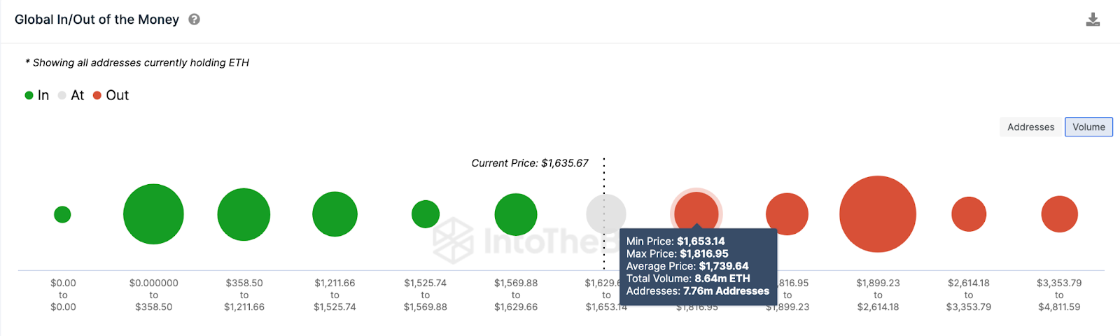 No entanto, conforme mostrado acima, 3,6 milhões de endereços que compraram 7,5 milhões de Ethereum ao preço mínimo de US$ 1.570 poderiam impedir essa queda.