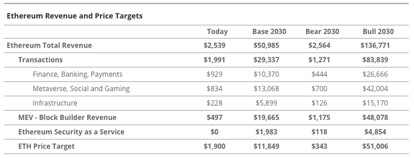 A empresa de gestão de investimentos VanEck sugeriu uma ambiciosa meta de preço de mais de US$ 50.000 para o Ethereum até 2030. Essa previsão de preço pode parecer uma aspiração inicialmente, mas é baseada em análises práticas.