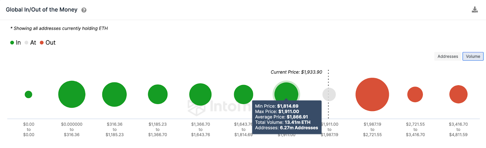 Porém, os touros também têm uma boa chance de permanecer no controle se conseguirem ultrapassar a marca de US$ 2.000. Mas, como visto acima, uma enorme parede de vendas montado por 7,3 milhões de detentores que compraram 33 milhões de ETH ao preço mínimo de US$ 1.987 pode representar um desafio para esse aumento.