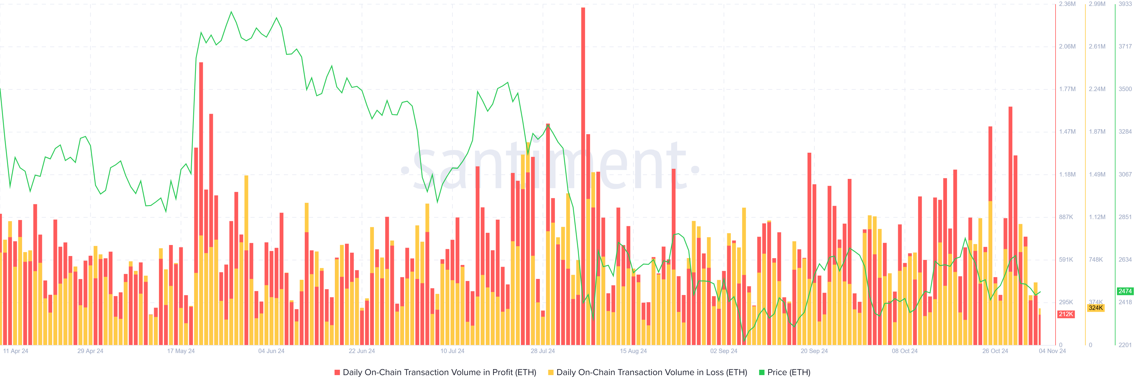 O momento macro do Ethereum também aponta para um potencial de alta. O volume diário de transações on-chain em lucro tem superado consistentemente as transações em prejuízo, sinalizando uma força subjacente nas condições de mercado do Ethereum. Isso sugere que uma grande parte dos detentores de ETH está no lucro, o que poderia apoiar um rompimento da consolidação em curso.