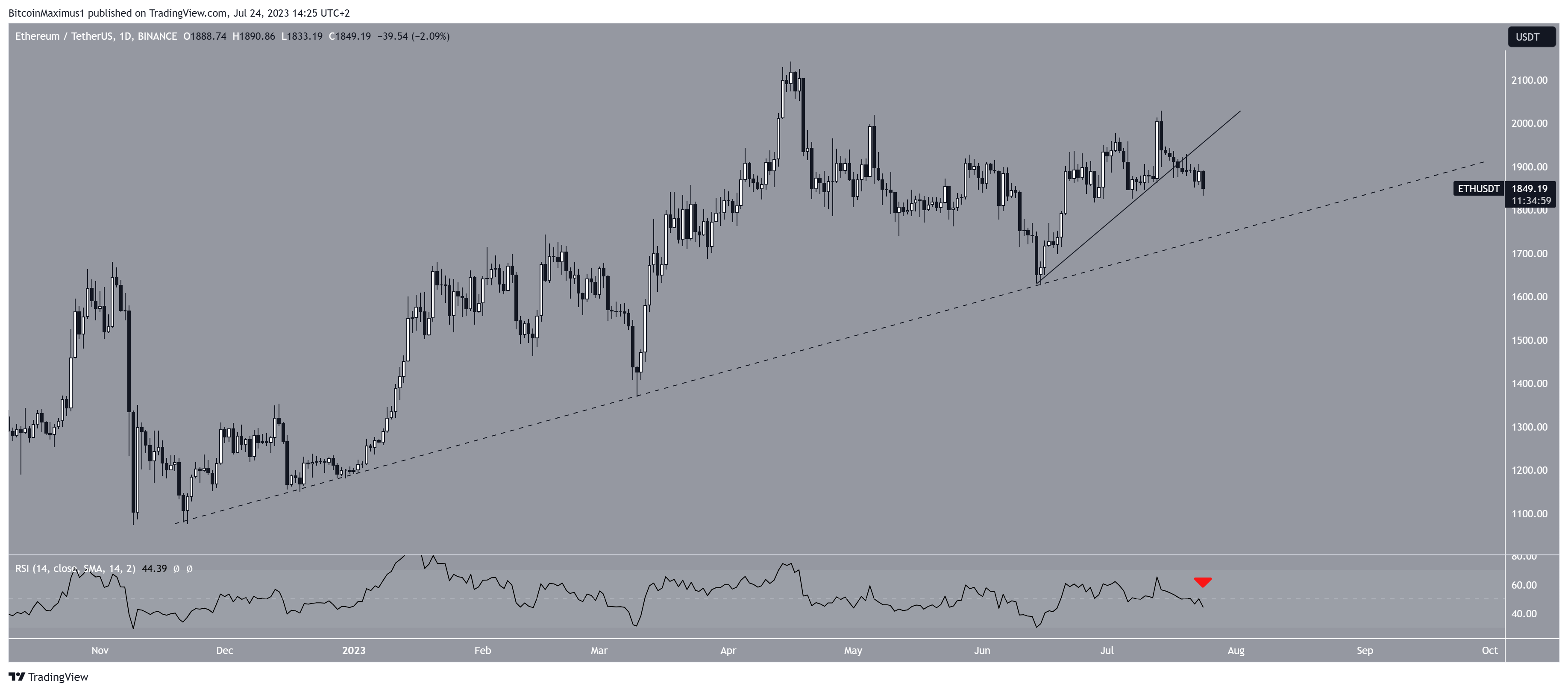 O Ethereum (ETH) caiu desde que atingiu uma nova máxima anual em 14 de julho. O movimento causou uma quebra de uma linha de tendência de alta, confirmando que o preço entrou em correção.
