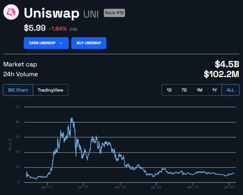 Notavelmente, a Uniswap v3 baseado em Ethereum experimentou quase o dobro dos volumes de negociação horas após o processo da SEC dos EUA contra a Binance. A Uniswap, a maior DEX do mercado, expandiu sua presença para a rede Avalanche. Atualmente, seu token nativo UNI é negociado perto de US$ 6.