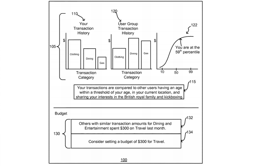 Em 2013, o gigante da mídia social Facebook registrou uma patente de uma ferramenta que rastreia transações financeiras dos usuários e a compara com outros usuários de um grupo demográfico semelhante. A patente de seis anos foi finalmente aprovada e é mais uma patente relacionada a finanças.