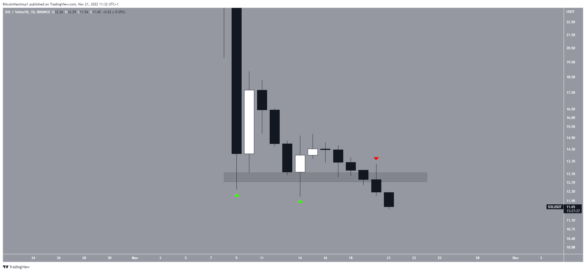 O gráfico diário de curto prazo suporta esta hipótese. Embora o preço da Solana tenha subido na área de US$ 13, criando dois candles inferiores (ícones verdes), ele caiu desde então. A área de US$ 13 agora provavelmente atuará como resistência (ícone vermelho). Como resultado, é quase certo que a previsão de preço será de baixa.