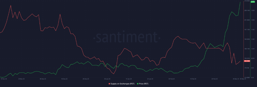 Também se reflete no sentimento geral de alta em toda a rede, já que os investidores testemunharam lucros consistentes desde 19 de fevereiro. Este foi o dia em que o preço do FET superou sua máxima anterior de US$ 0,90.
