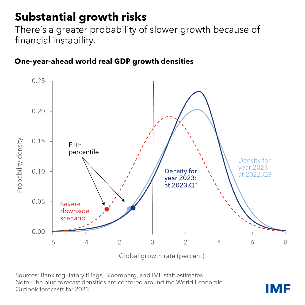 Em seu papel de avaliar a estabilidade financeira global, o FMI assinalou lacunas na supervisão, regulamentação e resolução de instituições financeiras. Relatórios anteriores de estabilidade financeira global alertaram sobre as tensões nos intermediários financeiros bancários e não bancários, diante de taxas de juros mais altas.