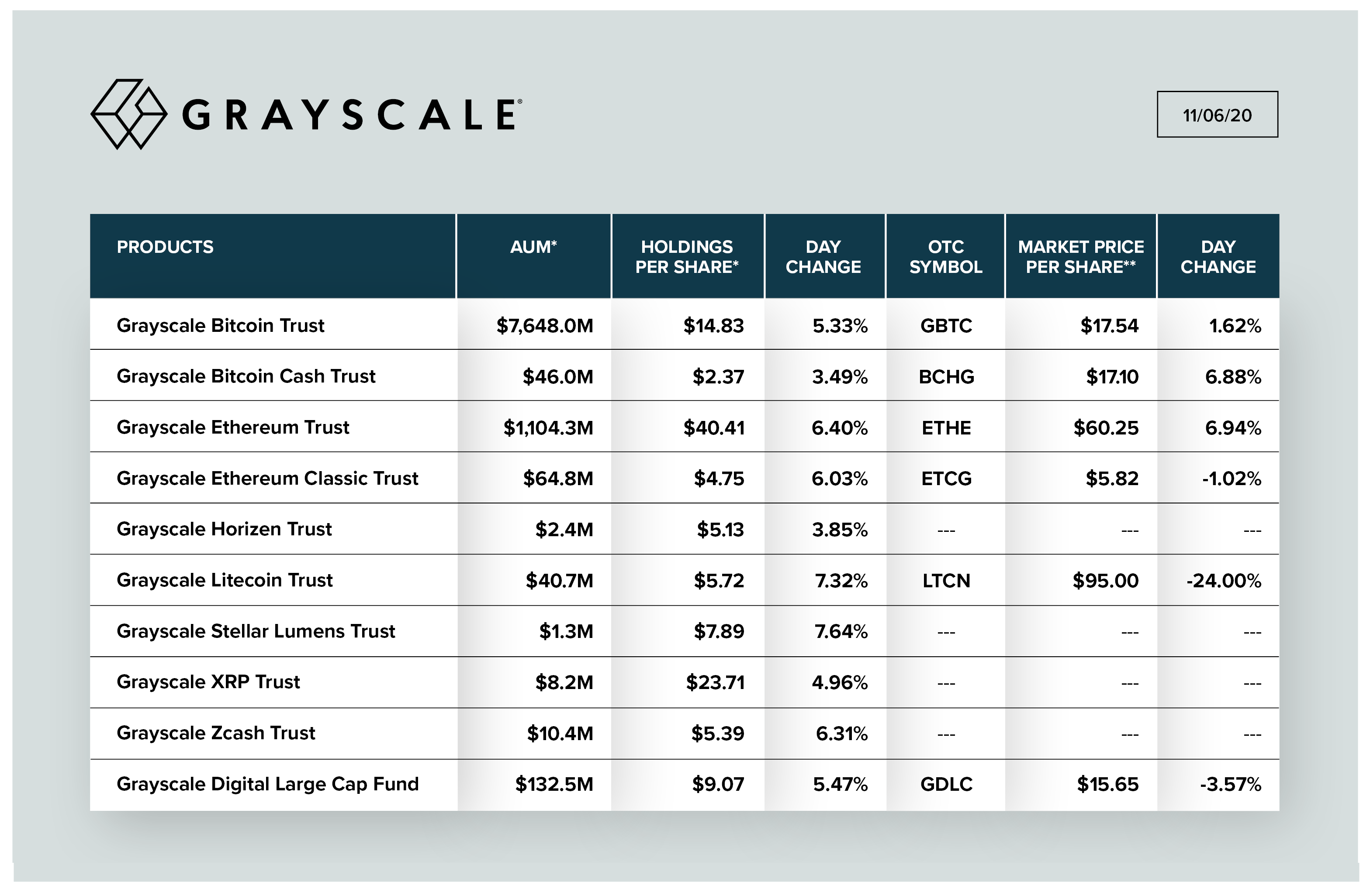 A Grayscale aumentou sua participação desde o início do ano. O fundo de bitcoin da empresa é agora pouco mais de $ 7,6 bilhões, de longe seu maior veículo de investimento. O trust aumentou em $ 1,6 bilhão somente no primeiro semestre de 2020.