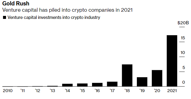 De acordo com a empresa de dados de mercado PitchBook, as empresas têm sido extremamente ativas em termos de investimentos no mercado de criptomoedas. Em 2021 já houve cerca de US$ 17 bilhões investidos, bem mais que o recorde anual anterior, de US$ 7,4 bilhões em 2018. Este ano, o valor de investimento equivaleu ao de todos os anos desde 2010 combinados.
