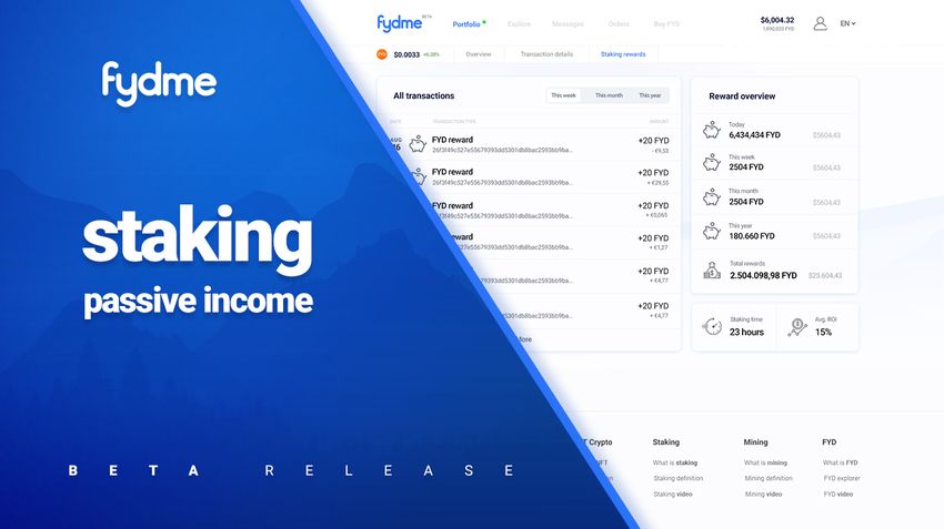 - Renda passiva: você pode ganhar entre 10% e 15% na renda passiva fazendo staking de seu estoque de FYDcoin ou hospedando um masternode em seu próprio servidor para ganhar 15%.