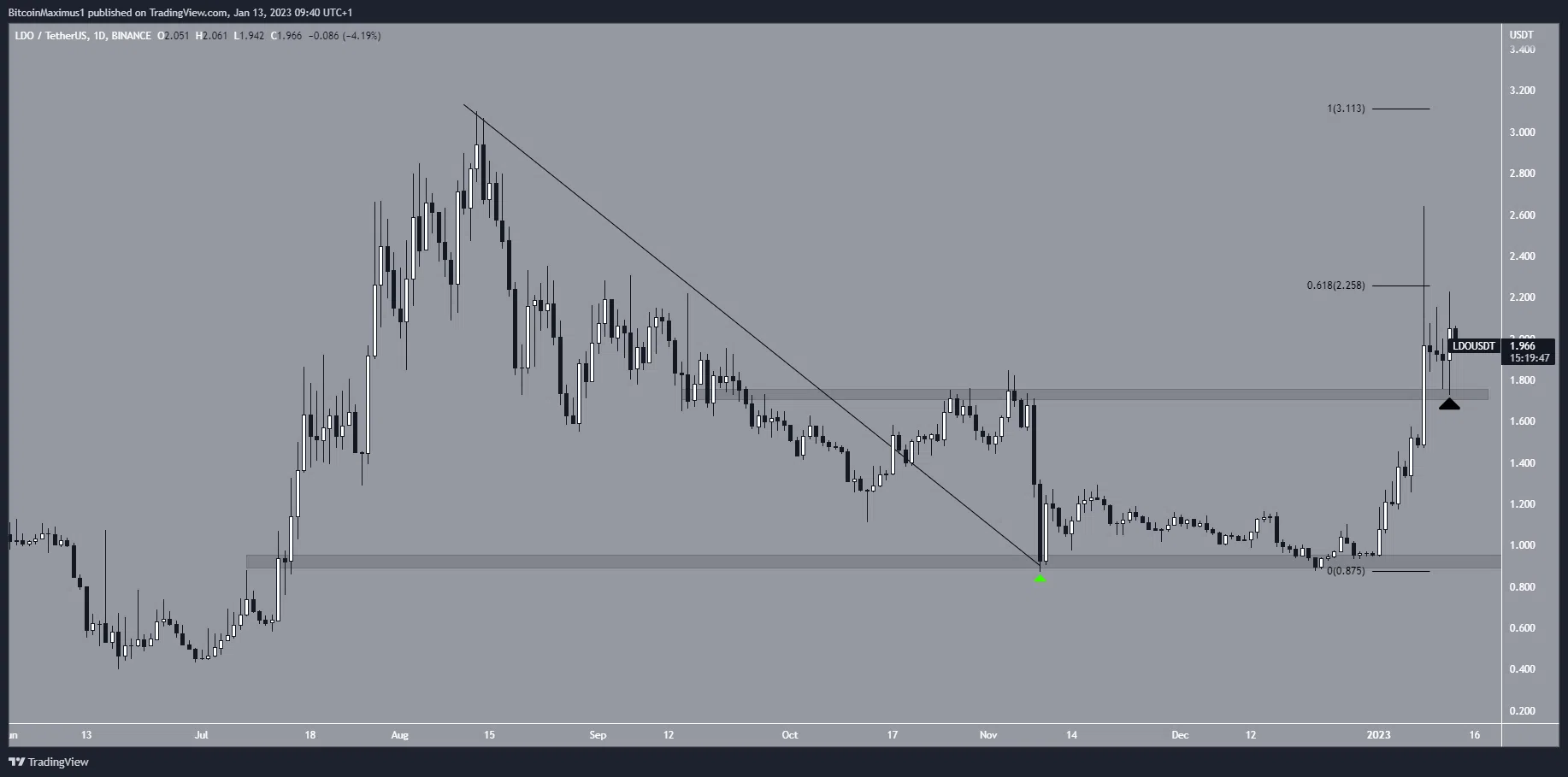 SponsoredO token subiu desde então e rompeu acima da área de resistência de US$ 1,73 em 8 de janeiro. Em seguida, validou-o como suporte quatro dias depois.