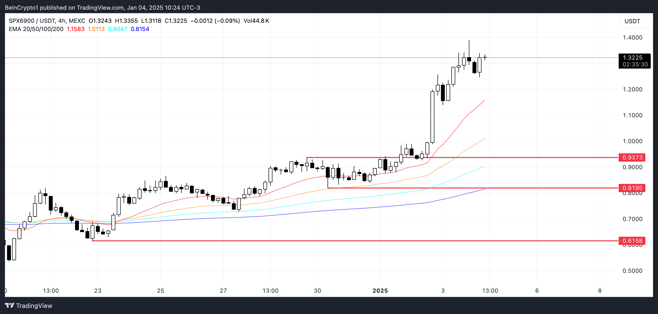 SPX alcançou um novo recorde, com seu valor de mercado atingindo US$ 1,22 bilhão, colocando-a entre as 100 maiores altcoins. A moeda subiu 63% na última semana, mostrando forte impulso de alta, apesar de uma queda de 27% no volume de negociações nas últimas 24 horas.