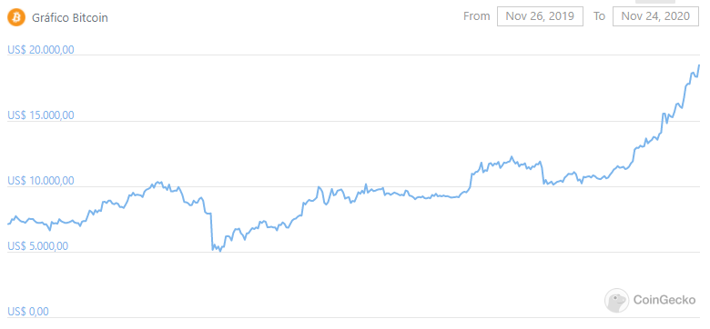 A declaração de Lopez veio pouco antes de o bitcoin atingir US$ 19 mil, marca registrada pela última vez em janeiro de 2018. Às 13h, a moeda já passa de US$ 19.300, segundo o Coingecko. Já no Brasil, o BTC surge negociado, em média, a cerca de R$ 105.500, de acordo com o Cointrader Monitor.